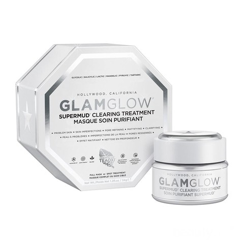 Masker ini mengandung clay dan Activated-X charcoal yang mengangkat kotoran, dan menyerap minyak berlebih dalam pori-pori. Perpaduan 6 acids bekerja untuk mencerahkan serta menghaluskan kulit. Tak hanya itu, GlamGlow Supermud Clearing Treatment dapat dijadikan sebagai acne treatment, cukup oleskan layaknya obat jerawat pada kulit yang bersih.