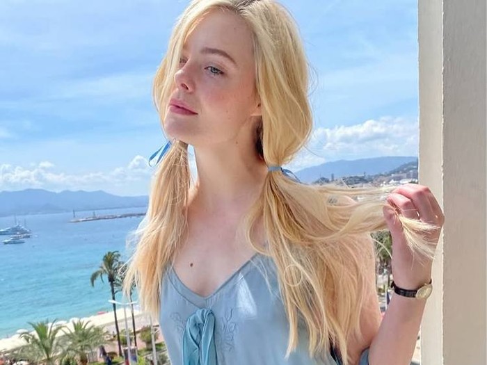 Elle Fanning dengan warna rambut Lemon Platinum/ Foto: Instagram.com/justjenda