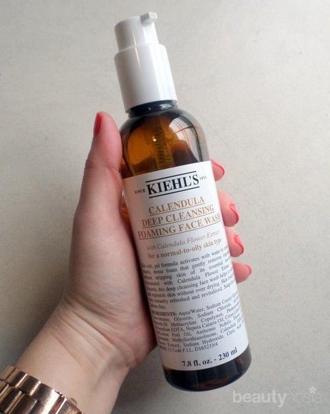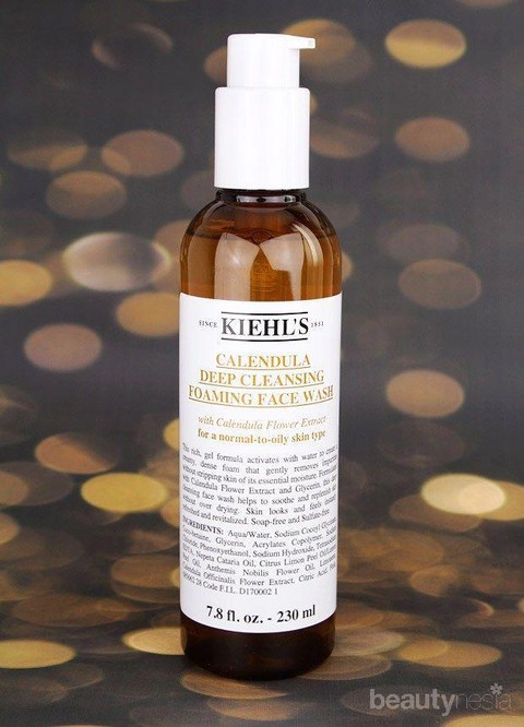 Produk yang bisa berperan sebagai facial cleanser ini teksturnya creamy gel dan tidak berwarna. Agar berbusa kamu harus mencampurnya dengan air. Pembersih kulit wajah ini akan membantu membersihkan kulit dari kotoran dan minyak sehingga kulit lebih bersih, halus dan lembut. Meskipun produk ini adalah facial wash atau facial cleanser namun formulanya bebas sabun dan bebas paraben sehingga ideal untuk kulit berminyak dan aman untuk kulit sensitif. Kiehl's Calendula Deep Cleansing Foaming Face Wash memiliki aroma teh atau herbal yang tidak strong dan merelaksasi.
