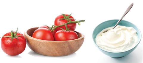 Yogurt telah lama digunakan dalam perawatan kecantikan karena kandungan lactic acid di dalamnya yang bisa mencerahkan tone kulit dengan sangat efektif. Untuk itu, yogurt sering dimanfaatkan untuk menghilangkan bekas jerawat dan juga flek hitam pada wajah. Buah tomat yang mengandung vitamin C dan antioksidan yang tinggi juga bekerja sebagai pencerah kulit alami dan juga ampuh untuk menghilangkan flek hitam.