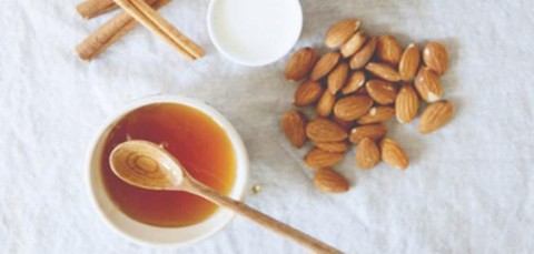 - Campurkan almond yang telah dihaluskan dengan 1 sdt bubuk kayu cendana dan madu.