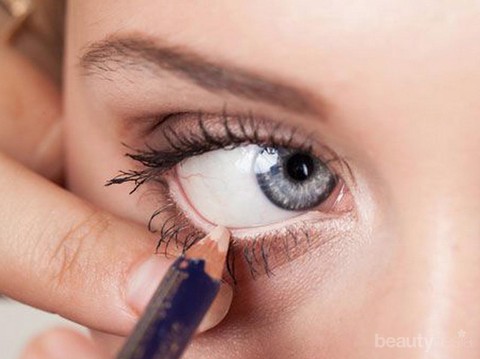 Cara make up terakhir ialah mengaplikasikan nude eyeliner ke bottom waterline kamu. For your info, this method will make you look super fresh, just like someone who has a-good-enough-sleep, ladies!