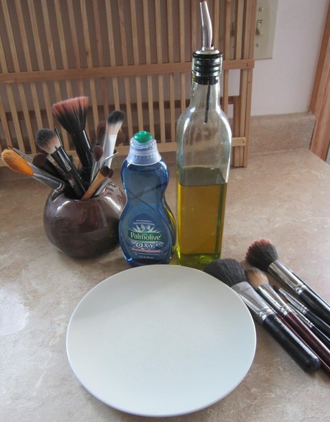 Khusus kuas yang digunakan untuk mengaplikasikan kosmetik bertekstur cair. Minasan bisa menggunakan minyak zaitun dengan mengoleskannya pada bagian ujung kuas lalu gosok sampai sisa eyeliner dan lipstik yang mengering pada ujung kuas luruh. Kemudian lanjutkan dengan sabun untuk menghilangkan minyak yang menempel.