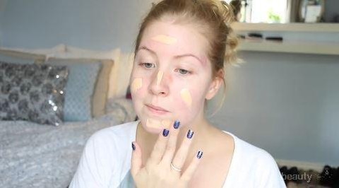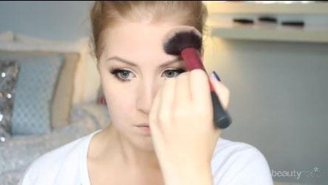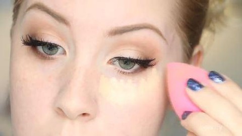 Setelah makeup mata selesai, saatnya untuk mengaplikasikan concealer pada wajah. Oleskan concealer pada area di bawah mata kemudian ratakan. Setelah itu, bubuhkan bedak tabur secara merata ke seluruh wajah kecuali bagian mata yang sudah dirias.