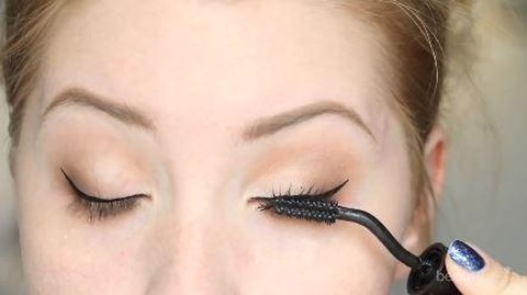 Sapukan maskara pada bulu mata atas dan bawah. Setelah itu, tempelkan bulu mata palsu pada bulu mata bagian atas.