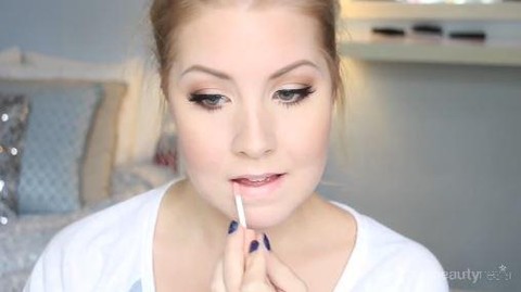 Terakhir, oleskan lip pencil kemudian lapisi dengan lip gloss setelahnya.