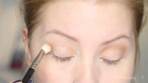 Selanjutnya, gunakan eyeshadow shade nude lalu aplikasikan pada area kelopak mata di bawah eyeshadow yang pertama. Gunakan shade taupe kembali untuk diaplikasikan di bagian ujung luar kelopak.