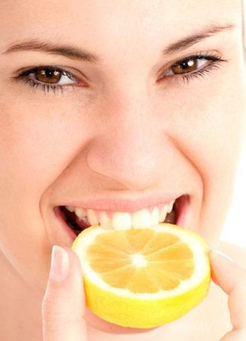 Lemon mengandung kalsium yang bisa membantu memutihkan gigi. Cukup campurkan air perasan lemon dengan baking soda, oleskan pada gigi yang menguning tunggu 1 menit. Lalu bersihkan gigi dengan sikat gigi perlahan-lahan. Sebaiknya jangan dilakukan terlalu sering karena email gigi bisa rusak karena asam lemon.