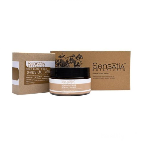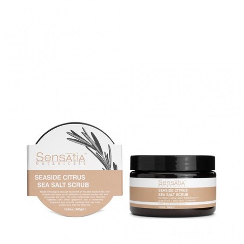 Sensatia Botanicals Seaside Citrus Sea Salt Scrub bahan utamanya adalah garam laut organik yang berasal dari pantai timur Bali. Kandungan mineral dari garam laut ini dapat menembus kulit, memperkuat sistem kekebalan tubuh dan membantu untuk detoksifikasi tubuh. Exfoliating toner ini diperkaya pati jagung untuk membantu menyerap keringat, French clay untuk menarik racun keluar dan Afrika Shea Butter untuk melindungi, melembapkan dan meningkatkan elastisitas kulit. Sensatia Botanicals Seaside Citrus Sea Salt Scrub juga memiliki kandungan berupa gabungan dari Lavender Perancis, Rosemary Spanyol dan minyak esensial white grapefruit yang bersifat astringent dan antiseptik, membantu memudarkan selulit, memperbaiki kulit kering atau berminyak, memudarkan garis halus dan keriput, membantu meringankan luka bakar, membantu menyeimbangkan sekresi sebum. Jadi, selain dapat menghasilkan kulit yang cerah, halus dan lembut, Sensatia Botanicals Seaside Citrus Sea Salt Scrub juga bisa membantu mengatasi masalah jerawat di punggung lho!