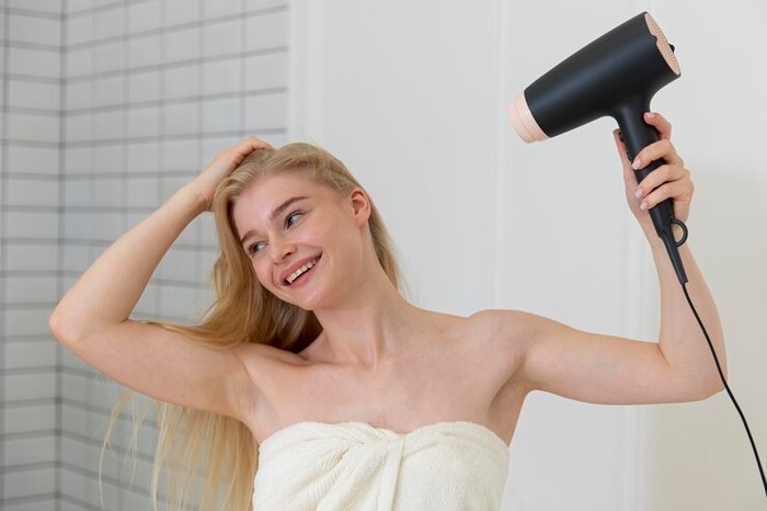 ![]() Menggunakan hair dryer/Foto: Freepik/@cookie_studio |