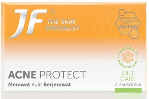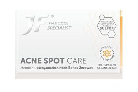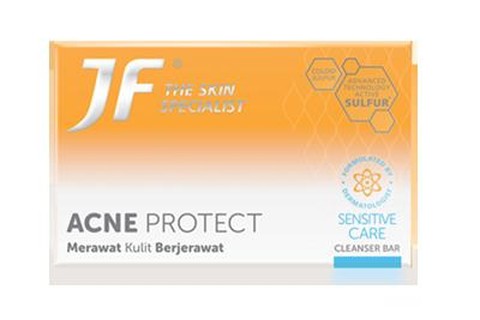JF Sulfur adalah sabun sulfur pertama di Indonesia. Diformulasikan oleh dokter spesialis kulit, JF Sulfur mengandung bahan aktif “natural anti-bacterial” untuk melawan jerawat, tanpa membuat kulitmu kering. Kini, JF Sulfur telah berganti nama menjadi JF The Skin Specialist, dan menghadirkan beragam perawatan berbeda sesuai kebutuhan kulit berjerawat.