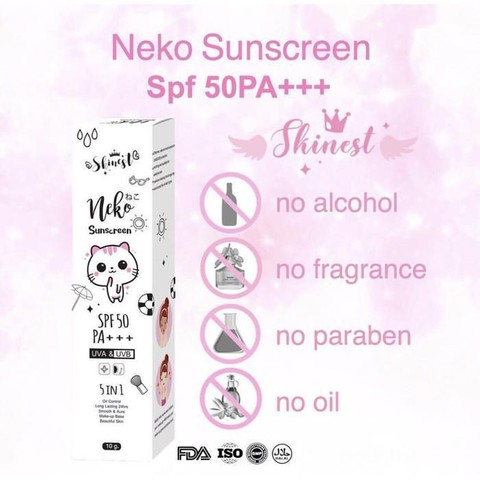 Neko Sunscreen merupakan produk tabir surya dari beauty brand asal Thailand, Skinest Clinic. Beauty brand ini memang sudah memproduksi banyak sekali ragam produk kecantikan yang terbukti berkualitas tinggi. Selain itu, kamu juga tidak perlu khawatir sebab semua produk yang dimiliki Skinest Clinic ini sudah teruji aman secara dermatologis, klinis, dan juga halal, lho!