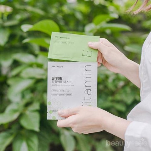 Varian skin care yang terakhir ini sangat membantu mencegah penuaan dini dengan membuat kulit lebih kencang serta menyeimbangkan pH kulit wajah. Masker ini sangat direkomendasikan untuk kulit sensitif dan mudah berjerawat. Tekstur sheet mask varian Vitamin E ini sama dengan varian Vitamin B, yakni lyocell sheet yang menempel dengan baik di kulit.
