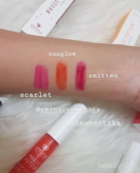 Emina Magic Potion hadir dalam 3 varian warna yang bisa kamu pilih sesuai keinginanmu. Ada warna 01. Scarlet (berry), 02. Sunglow (orange), dan 03. Smitten (pink). Warna lipstik ini sangat netral dan cocok dipakai oleh semua warna kulit. Warna lipstik ini juga cocok banget untuk para remaja yang mengingingkan bibir cantik natural. Seluruh warna memiliki pigmentasi yang baik, bisa menutup seluruh bibir dengan satu kali swipe. Lip tint ini bagus banget untuk pemilik bibir hitam! Kamu bisa membeli lip tint ini dengan harga Rp 46.000.