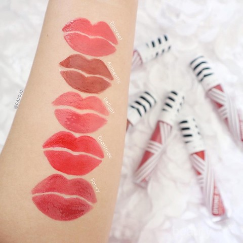 Mizzu Valipciouse Divine Gloss ini memang baru menawarkan 5 warna saja. Meskipun begitu, warna-warna ini sudah cukup mewakili warna-warna lipstik favorit. Shade 01-Discreet adalah warna warm pink. Shade 02-Authentic nuansa warnanya adalah brown. Shade 03-Delight warnanya mirip dengan shade Discreet namun sedikit lebih muda. Shade 04-Gratitude adalah satu-satunya pilihan warna merah. Shade 05-Savvy juga merupakan warna pink namu tone-nya lebih cool dibandingkan dengan shade 01 dan 03.