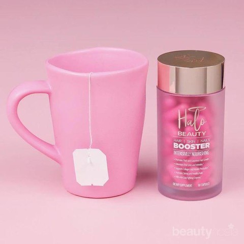 Booster ini bukan booster sembarangan, lho! Supplement ini sudah mendapat pengakuan dari Therapeutic Good Administration (TGA) Australia yang setara dengan Food and Drug Administration (FDA) Amerika Serikat atau Lembaga Administrasi Obat dan Makanan. 2 kapsul vitamin kecantikan Halo Beauty Hair Skin and Nails Booster ini sanggup membuat rambutmu tumbuh lebih tebal dan berkilau, meminimalisir garis-garis halus dan keriput di wajah, menambah produksi keratin dan collagen yang bagus untuk pertumbuhan kuku, rambut, serta kekenyalan kulit, membuat kuku tumbuh lebih kuat dan sehat, dan juga diperkaya dengan enzim Anti-Gray Figthing.