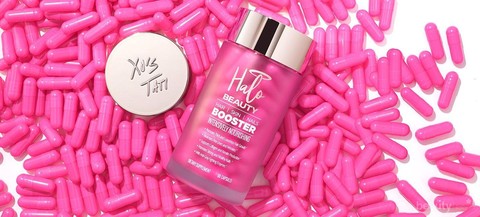 Jangan bayangkan booster ini seperti essence atau krim, ya. Booster yang disebut Halo Beauty Hair Skin and Nails Booster ini adalah kumpulan kapsul berwarna pink yang dikemas dalam sebuah botol transparan yang berdesain frosted glass dan tutup silver dimana terdapat cetakan nama Tati serta halo Beauty. Dari packagingnya, kita tahu bahwa produk yang menjadi tips kecantikan bagi wanita ini akan mempercantik tampilan meja makeup kita!