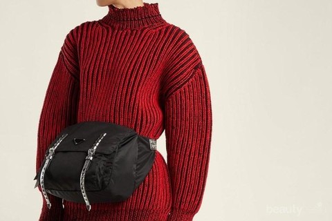 Jika Gucci memilih model tas clutch untuk desain fanny pack-nya, Prada justru sebalinya. Model tas fanny pack yang baru ini didesain dengan ukuran besar yang mirip duffle bag. Tas wanita ini hadir dalam beberapa warna diantaranya putih, hitam, dan merah. Bentuk tasnya yang besar terbuat dari bahan nylon dengan aksen pyramid-studded leather strap pada bagian depan dan bagian belt-nya. Meski tas ini berbentuk sangat besar, namun tas ini masih terkesan stylish dan bisa dipadukan dengan outfit apapun. Satu buah tas ini dibanderol dengan harga US$ 1,550.