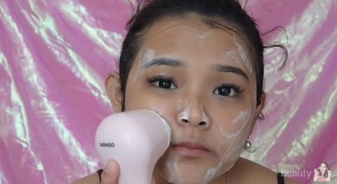 - Gunakan cleanser ke seluruh wajah, lebih direkomendasikan menggunakan cleansing foam