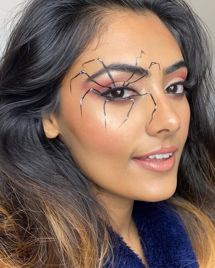 Kalau kamu ingin tampil seksi tapi tetap ada sentuhan seramnya, Spider Glam bisa jadi pilihan yang pas banget nih. Kamu bisa bikin sendiri pakai bulu mata tebal dan eyeliner untuk membuat “kaki” laba-laba di sekitar mata. Bulu mata lentik dan eyeliner hitam tegas juga jadi kombinasi yang tepat untuk tampilan misterius sekaligus memikat lho, Beauties.