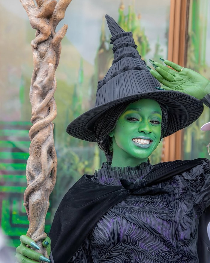 Look hijau ala Elphaba dari Wicked lagi trending banget! Makeup ini cocok buat kamu yang ingin tampil unik, kuat, dan penuh karakter. Tambahkan gradasi hijau dan shimmer untuk hasil yang memukau./Foto: Instagram/never_land2015