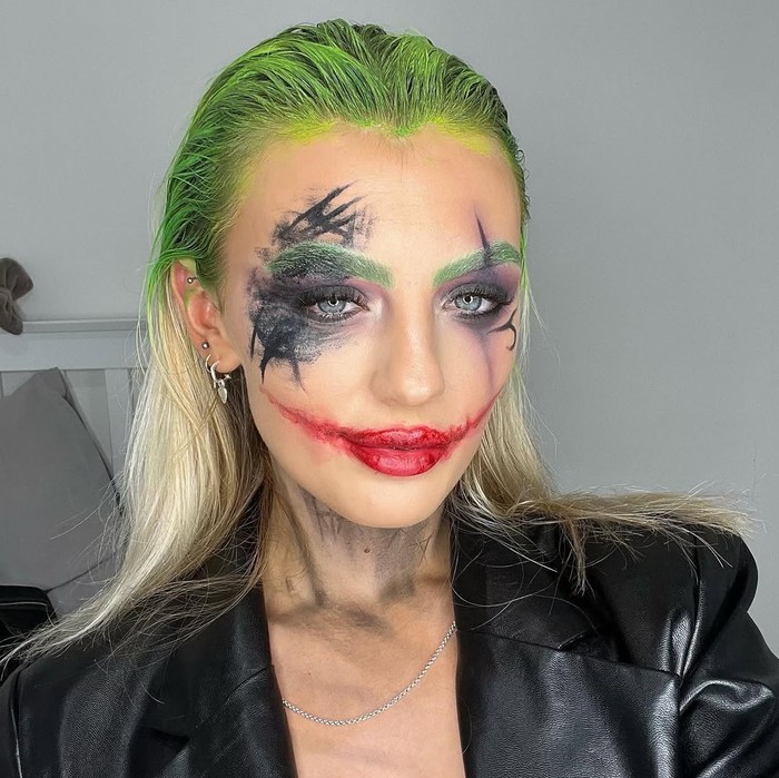 Wajah putih, bibir merah lebar, dan mata hitam berantakan, The Joker selalu jadi pilihan seru buat yang suka tampil nyentrik dan ekspresif. Makeup ini cocok banget buat Beauties yang berani tampil beda!/Foto: Instagram/beautybycourt__