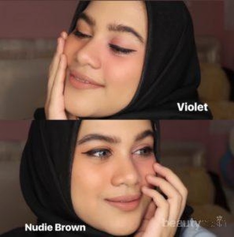 Kamu akan mendapatkan hasil yang natural dan sama sekali enggak menor untuk kulit Indonesia. Jangan under estimate sama warna Violet, Ladies. Kamu akan takjub setelah blend dengan benar warna ini. Warna Nudie Brown lebih cocok untuk kulit sawo matang. Pigmentasi yang dihasilkan juga cukup bagus.