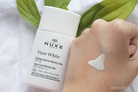 Daily UV Protector SPF30 PA+++ NUXE White merpakan rangkaian wahite series dari Nuxe yang mmapu melindungi kulit dari paparan sinar matahari yang menyengat. Produk yang diklaim sebagai skin care yang bagus dan cocok untuk meua jenis kuit ini juga memiliki tekstur sangat ringan dansedikit menyerupai air yang mudah menyerap pada kulit dengan cepat. Kamu sendiri bisa menggunakan produk ini setiap hari sebelum menggunakan foundation datau BB cream.