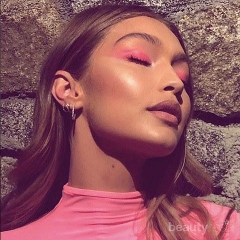 Foto: https://media.allure.com/photos/5b39534553a8467d3491764a/1:1/w_800%2Cc_limit/gigi%20hadid%20patrick%20ta%20pink%20makeup.jpgIa bermain dengan warna pink dengan cara yang paling tidak terduga. Dengan tujuan membuat tampilannya senada dari gaun Hadid yang berwarna gum, Gigi menggunakan warna merah muda yang cerah dimulai dengan bibir hingga tulang pipi. Untuk kelopak mata, Gigi mengenakan warna neon yang membuatnya terlihat anggun nan eksotis.