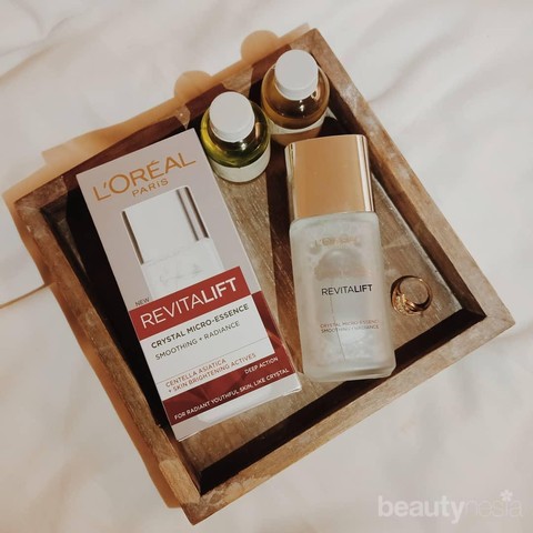 Foto: https://www.instagram.com/taploypailin/Sama-sama essence dari L'oreal. Loreal Revitalift Micronized Centella Essence Water dan Revitalift Crystal Micro Essence memiliki klaim yang cukup berbeda. Loreal Revitalift Crystal Micro Essence mengklaim bahwa produk skincare satu ini dapat membuat wajah tak hanya melembabkan tetapi juga dapat mencerah kulit sebening cristal yang sesuai dengan namanya Revitalift Crystal Micro Essence. Tak hanya itu essence dari L'oreal ini juga dapat membuat wajah glowing dan dapat mempercepat memperbaiki kulit yang bermasalah.