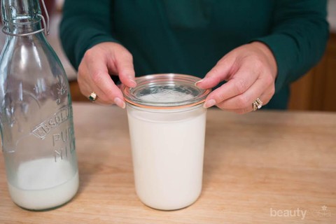 - Lalu, saring susu ini secara perlahan ke dalam toples kaca bertutup. Setelah menutupnya dengan rapat, masukkan kefir ke dalam freezer untuk didinginkan selama beberapa jam. Yup, It’s done and you can use your DIY Masker Kefir, ladies! Super easy and simple, right?