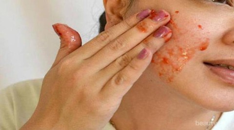 - Oleskan bubur tomat pada wajah dan diamkan 20 menit hingga mengering