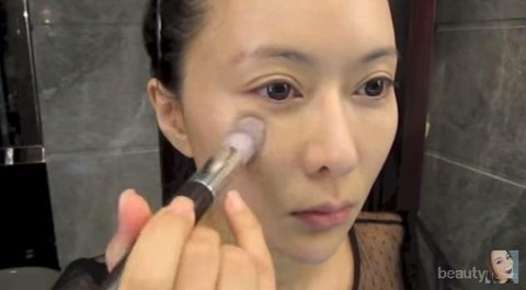 Setelah itu, gunakan base makeup yang mengandung efek glowy menggunakan brush dan diratakan dengan ujung jari seperti pada langkah sebelumnya. Kulit yang tampak cerah bercahaya merupakan kunci dari kulit yang tampak awet muda.