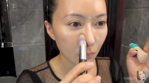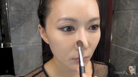 Usapkan brown shadow tipis-tipis pada bagian samping hidung di dekat mata dan pada bagian ujungnya. Hidung yang mancung dan lancip akan membuat wajahmu terlihat lebih muda.