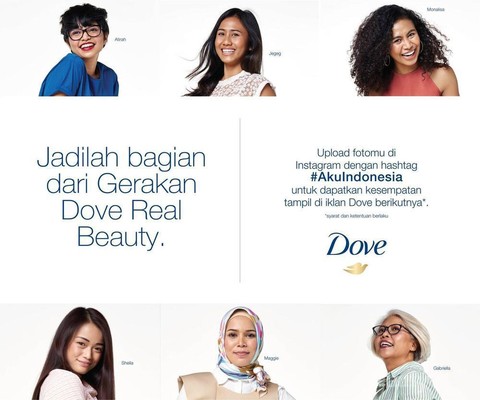 Karena itu, Dove mengajak seluruh wanita Indonesia untuk kembali percaya diri dan menunjukkan kecantikan mereka dengan ikutan campaign #AkuIndonesia. Seperti yang kamu tahu, Dove selalu memilih wanita biasa yang merepresentasikan ragam kecantikan wanita Indonesia sebagai bintang iklan mereka. Untuk mengikuti campaign ini, kamu hanya perlu mengunggah foto dirimu di Instagram, dan menuliskan caption tentang ragam kecantikan wajah wanita Indonesia serta rasa bangga kamu terhadap keberagaman kecantikan wanita Indonesia. Lalu, jangan lupa sertai hashtag #AkuIndonesia dan #Dove_IDN ya.