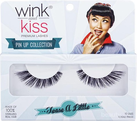 Satu lagi brand bulu mata palsu dari Indonesia, yaitu Wink And Kiss. Ditujukan untuk penampilan beragam yang cantik. Salah satu koleksi dari Wink And Kiss ini adalah Pin Up Collection yang terdiri dari Peek a Boo, Tease a Little, dan Love Me More. Pin Up Collection bisa kamu beli dengan harga Rp50.000 di Sephora.