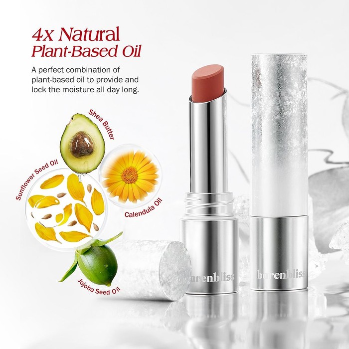 Barenbliss mengeluarkan lipstik terbaru dengan nama No Gravity Transferproof Matte Lipstick. Produk ini memiliki kandungan Sunflower Seed Oil, Shea Butter, Calendula Oil, dan Jojoba Seed Oil yang berfungsi untuk menjaga kelembapan bibir sepanjang hari.