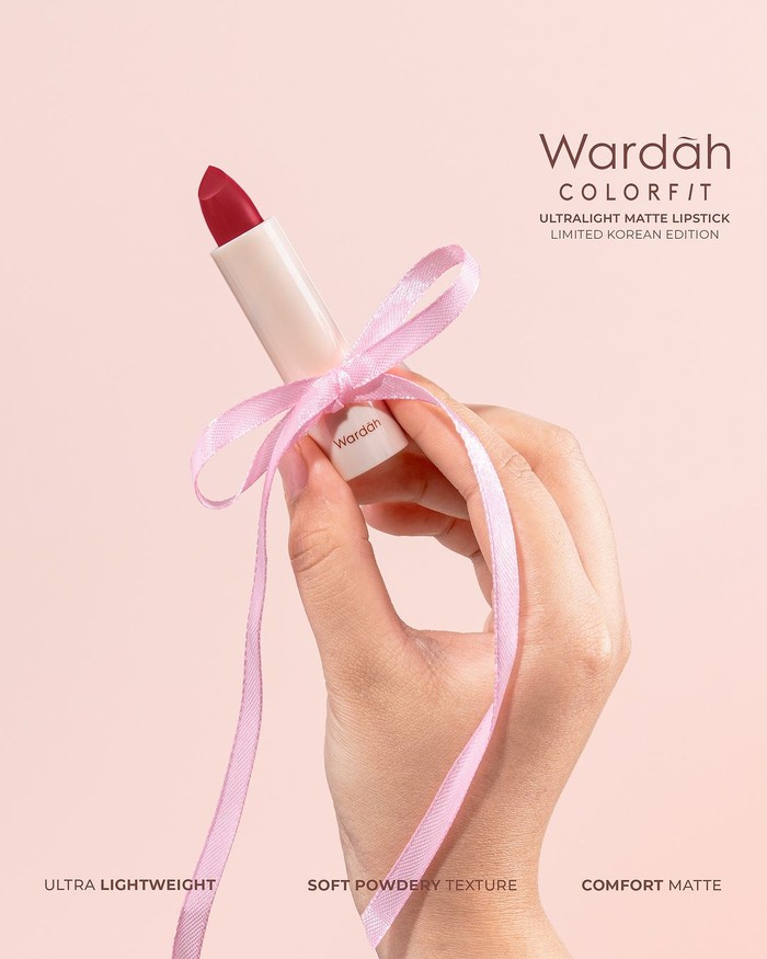Wardah Colorfit Ultralight Matte Lipstick Korean Limited Edition memiliki 5 shade yang bervariasi mulai dari soft pink hingga merah. Lipstik ini mengandung teknologi Color Powder Pigments untuk memberikan hasil powdery matte sehingga bibir terasa lebih lembut. Ada juga kandungan vitamin E agar kelembapan bibir tetap terjaga. Lipstik yang diklaim tahan 8 jam ini bisa kamu beli dengan harga Rp40 ribu-an.Â