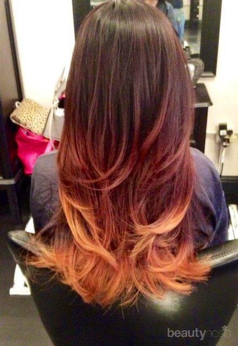 Teknik ombre ini cocok untuk kamu yang memiliki kulit sawo matang. Perpaduan cokelat dan merah ini akan menghasilkan warna yang cantik. Untuk kamu yang memiliki rambut cukup panjang bisa mengombinasikan warna red dengan warna lain yang lebih terang seperti golden blonde atau yang lainnya. Kamu juga bisa konsultasi terlebih dahulu sebelum benar-benar mengubah penampilan, agar mendapatkan hasil terbaik.