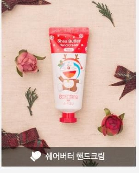 Hand cream dengan shea butter yang membuat tangan menjadi halus dan lembut. Sayangnya varian hand cream ini sama persis dengan edisi Doraemon sebelumnya yaitu clover, lavender, lily, pure dan rose. Tempatnya pun masih berbentuk tube, yang membuat beda hanya gambar logo Doraemon yang berbaju santa Klaus.