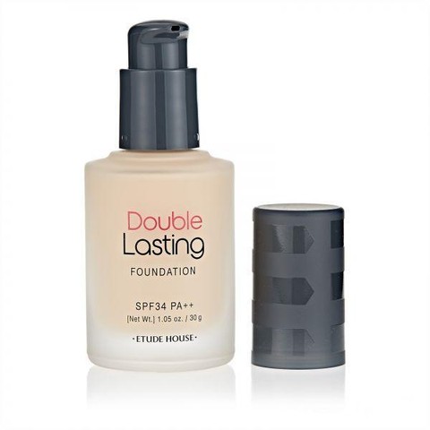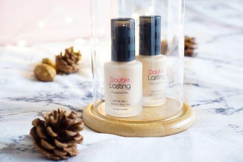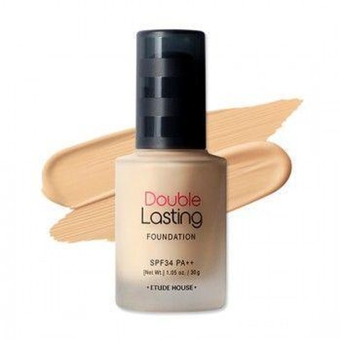 Etude House Double Lasting Foundation teksturnya agak encer dibandingkan foundation pada umumnya. Meskipun demikian, coverage foundation terbaik Etude ini cukup bagus, yakni medium to full coverage. Untuk wanginya cukup strong seperti wangi floral. Foundation ini juga sudah memiliki kandungan SPF 34 PA++.