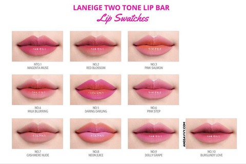 Tak tanggung-tanggung, Laneige langsung merilis 10 varian warna cantik sekaligus, masing-masing terdiri dari 2 shade. Kamu bisa memilih kombinasi antara warna gelap dan terang yang cocok untuk digunakan pada bagian luar maupun bagian dalam bibirmu.