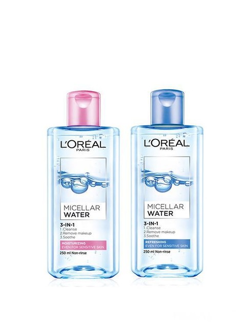 Buat para pecinta makeup tentu kamu sudah mengenal produk kecantikan L'oreal dan belum lama ini L'oreal mengeluarkan produk skincare ternayarnya berajuk L’Oreal Paris Micellar Water yang diklaim memiliki fungsi 3 in 1 yakni membersihkan, menghapus makeup dan merawat kulit. Tak tanggung-tanggung produk ini langsung mengeluarkan 2 varian sekaligus yakni, Micellar water moisturizing (pink) dan Micellar water Refreshing (Blue). Tertarik membeli produk ini, kamu bisa mendapatkannya dengan harga Rp 129.000.