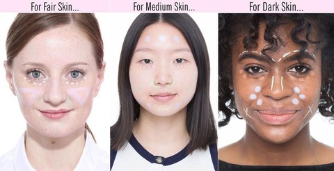 Dark Skin: jika pemilik kulit pucat menggunakan warna pink untuk menyamarkan lingkaran hitam di bawah mata, maka pemilik kulit gelap disarankan untuk memilih warna yang lebih cenderung orangey peach. Hal ini juga berlaku untuk warna hijau, kuning, atau ungu.