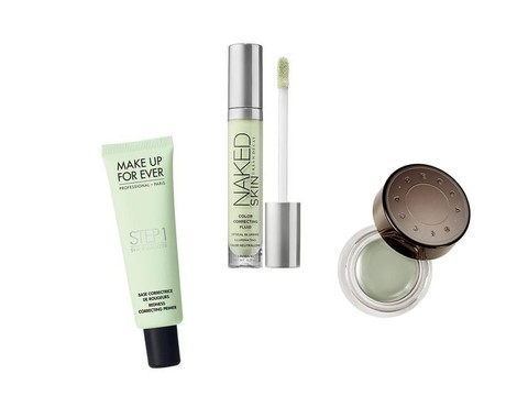 Warna hijau dapat menetralkan warna merah, sehingga sering digunakan untuk menyamarkan kemerahan pada kulit wajah. Kamu bisa gunakan color correcting bewarna hijau untuk menyamarkan jerawat atau bekas jerawat yang mengganggu. Jika kamu memiliki kemerahan di sebagian besar area wajah (seperti rosacea, windburn, atau sunburn), color correcting green primer bisa menjadi pilihan terbaik untuk mengurangi kemerahan dan memberikan base yang baik agar pengaplikasian foundation lebih flawless.