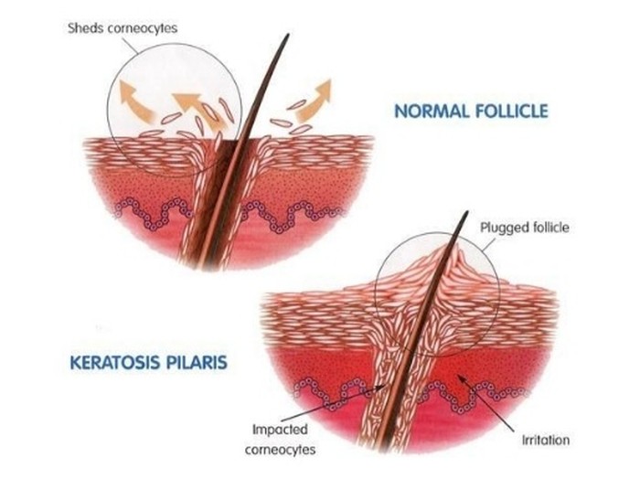 Seperti yang sudah dijelaskan di atas, keratoris pilaris terjadi akibat penebalan keratin yang menghalangi lubang pori tempat folikel rambut.