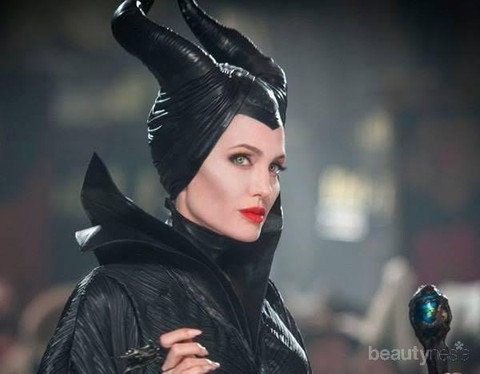 Salah satu ciri khas penampilan Angelina Jolie dalam film Maleficent adalah lipstik merah bold yang digunakannya selain tanduk dan busana serba hitam.