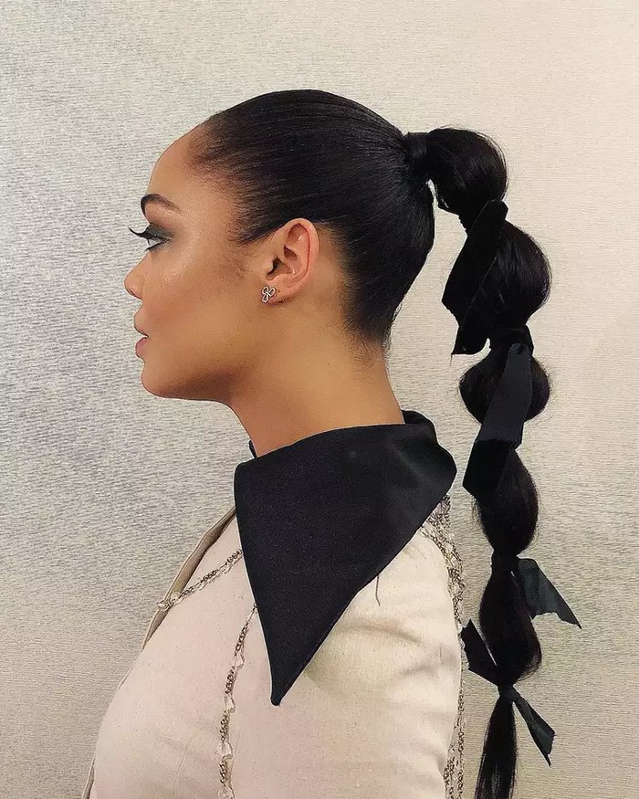 Tessa Thompson dengan gaya rambut bubble ponytail/ Foto: Instagram.com/lacyredway