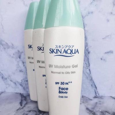 Salah satu produk pelembap sekaligus sunscreen yang favorit yaitu Skin Aqua UV Moisture Gel SPF 30 PA++ Normal to Oily Skin. Produk ini water-based dan memiliki tekstur yang cair sehingga sangat ringan di kulit. Tidak menggunakan pewarna dan parfum, aromanya seperti aroma fermentasi. Produk ini memberi efek putih jika setelah pemakaian tidak langsung ditutup bedak. Jadi baiknya langsung pakai bedak setelah pemakaian, supaya tidak meninggalkan efek putih atau whitecast. Harganya dibanderol sekitar Rp 50.000,- saja. Terjangkau, kan?