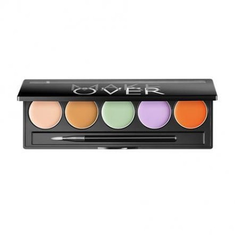 Make Over Camouflage Cream Face Concealer memiliki 5 macam warna dalam 1 palet. Dimana masing-masing warna memiliki kegunaan untuk menutupi warna kulit yang tidak merata pada wajah. 5 macam warna tersebut terdirii dari light beige, beige, light green, light purple, dan brown orange. Setiap warna tersebut memiliki macam kegunaan lho! light beige dapat kamu gunakan sebagai highlight pada area T (tulang hidung, dahi, tulang pipi dan dagu). Beige dapat menyamarkan noda atau bekas jerawat serta lingkaran hitam pada bawah mata. Light green untuk menyamarkan noda kemerahan seperti jerawat. Light purple untuk mencerahkan kulit kusam dan Orange untuk efek mencerahkan pada kulit gelap, serta bisa juga digunakan sebagai base blush on.